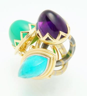 3 rings , Amethyst, Chrysophrase and Tourmaline - from £1,700 |