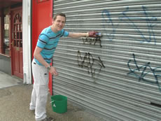 Local shopkeepers all along Churchfield Road are amazed to see volunteers scrubbing graffiti off their shopfronts. The DIY shop at no.32 gave away rubber gloves this time and will contribute to future sessions. Gino Celentano, who runs the second-hand furniture shop De Sio said he was really happy the graffiti on his shop had been scrubbed off. "It's an amazing thing when all the graffiti has gone. It makes the area so much better."