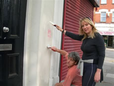 Acton Central's independent candidate Ken White, despite not having been voted in, was cheerfully taking part in his first Paint-Out session with his partner Angela Jullings. He told me "even if I'd won, I'd still be here". He is determined to badger Railtrack for permission to clean up the walls near Acton Central Station and feels local councillors should make themselves more visible and that they should take part in Paint-Out sessions.