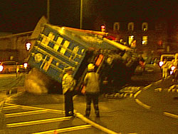 The lorry was righted by placing airbags underneath it and inflating them. This has clearly the junction and latest reports are that traffic in the area is as it would be normally.