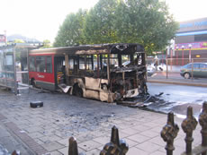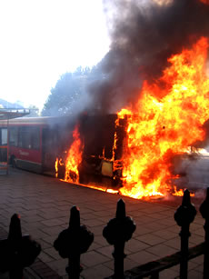 A 391 bus met a spectacular end after catching fire opposite the Brentford Fountains Leisure centre on Sunday (29th July).